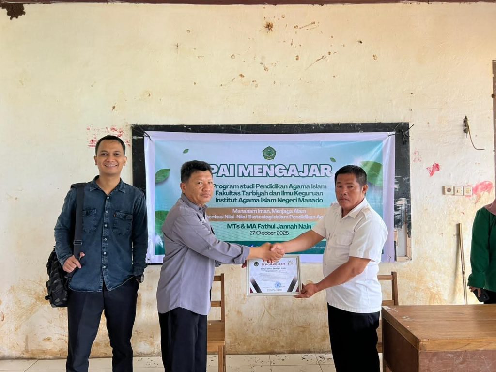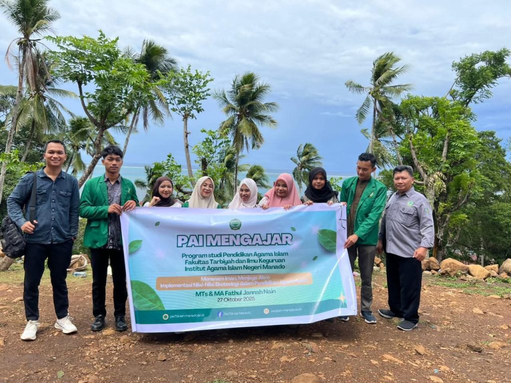 Manado, (27 Oktober 2025) Program Studi Pendidikan Agama Islam (PAI) Fakultas Tarbiyah dan Ilmu Keguruan (FTIK) Institut Agama Islam Negeri (IAIN) Manado kembali melaksanakan kegiatan PAI Mengajar dengan tema “Menanam Iman, Menjaga Alam: Implementasi Nilai-Nilai Ekoteologi dalam Pendidikan Agama Islam”. Kegiatan ini berlangsung di MTs dan MA Fathul Jannah Pulau Nain, Kabupaten Minahasa Utara.