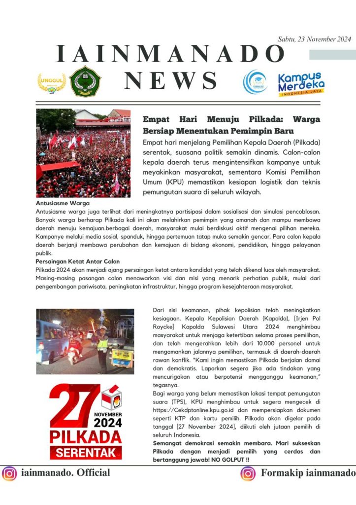 Prestasi ini diharapkan dapat menginspirasi mahasiswa PAI lainnya untuk terus meningkatkan minat literasi, aktif mengikuti kompetisi, dan ikut berperan dalam menghidupkan budaya akademik yang positif di lingkungan kampus. Semangat berkarya dan berprestasi menjadi wujud nyata kontribusi mahasiswa dalam memajukan mutu akademik dan karakter keilmuan di IAIN Manado.